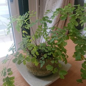 かわいいお皿をゲットしたので、苔玉作ってのせてみました。 あ、でも見えへんやん…😅