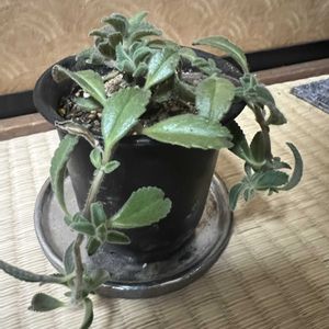 こんばんは プレクトランサス テヌイフローラス 謎肉🤣🤣🤣 プレクトランサスってアロマティカスと同じ仲間なのねぇ〰️ 葉っぱがね、分かりにくいけど、裏に筋があって、太陽にかざすと少し透ける感じなの〰️ サルコステムモイデスは別名なのかな❓ 持ってる人少ないョ〰️のおじさんの一声で買っちゃいました〰️🤣