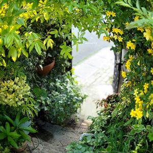 カロライナジャスミン💛🍃 一昨年お迎えして、その冬は室内で 今年は軒下で様子を見ました 保険株の小さな鉢植え🪴は室内で冬越しを… 軒下でも元気に冬を越すことができて一安心 ただ雪国だと地植えは難しそうです 花ともさんのカロライナジャスミンが咲き誇るガゼボに憧れてお迎えしたけれど そちらは諦めなければ そもそもガゼボを作るスペースもないんですが🤭 カロライナジャスミンの蔓が風に揺れるたびに ヒメウツギにチョッカイ出してるように見えて 思わず笑ってしまいます