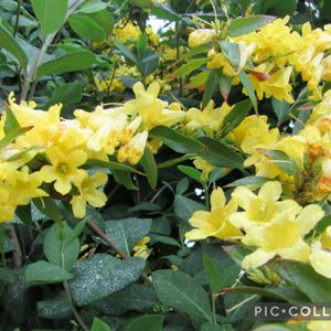 散策途中の道脇にカロライナジャスミンが満開です。 トランペットフラワーとかイブニングトランペットの別名でも呼ばれます。 ジャスミンと名前が付き 花の形も似ていますが ジャスミンとは 科も属も異なり全草に毒があります。😯 特に中枢神経に作用して呼吸麻痺 血圧低下などを引き起こしてしまうそうなので ジャスミンティなどにしないようくれぐれも注意が必要です。☝️✨ アメリカ メキシコ グアテマラ原産。 ゲルセミウム科ゲルセミウム属の常緑蔓性低木。