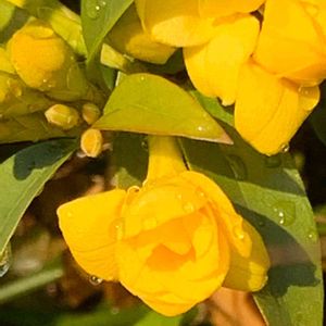 カロライナジャスミン🌱 雨上がり、ジャスミンが開きました
