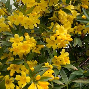 何年生のカロライナジャスミンかな? 最近、全然お花が咲かなかったけど…今年は沢山の花芽をつけて咲き始めました! 物凄く久しぶりに咲いてくれて、嬉しい💓