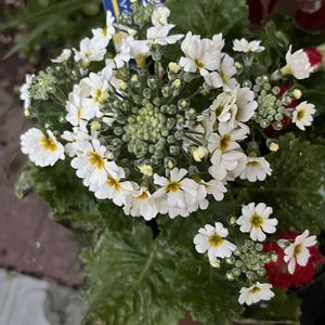 今年のお正月に植えたプリムラマラコイデスの白い方 最近になって薄い紫色に変わってきました こんな事ってあるの?