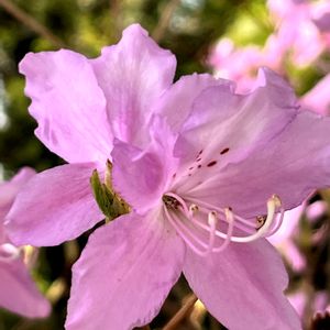 今日のお花 ツツジ③ カラムラサキツツジ 3/31に桜・アセビと、このツツジが 写ったpicを投稿しました。 名前がわからず、このツツジだけを撮影し グーグルレンズ先生に聞いたところ アザレアとカラムラサキツツジが 出てきました。 アザレアな訳ないな😮💨と思い カラムラサキツツジと判断しました。 違うよ!という方がいらっしゃったら 教えて下さ〜い。😊 よく見たらど真ん中に虫が写ってたので その部分を切り取ってみました。😅 カラムラサキツツジだけどピンクなので… 🏷ピンクワールドへ ようこそ 🏷可愛いピンク色♡ 🏷木曜は木の花 参加させて下さい。🥰