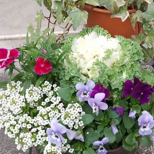 ビオラ 初雪の朝でしたが、日中はキラキラ✨のお日様がてできてくれました💓 外置きのビオラ、元気です😊