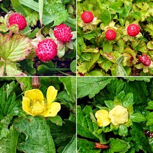今日の散歩🚶♂️ 荒川河川敷🚣 ヤブヘビイチゴの実🍓 以前撮った花と 並べてみました🎵