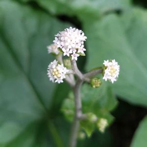ノブキ…キク科ノブキ属、北海道から九州に分布する多年草。湿った山道の腋や谷川の岸などに生育する。 葉が蕗に似て地味な花を咲かせ、粘り気のある実を種子をつける。 地味なお花ですが近くで見ると、とったも小さな可愛い花の集まりで、粘り気のある種子もユニークな形をしています💚❀💚❀💚 戸隠にて…その2
