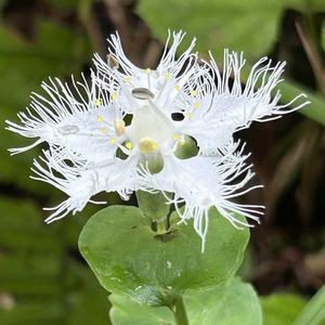 オオシラヒゲソウ(大白髭草) ウメバチソウ科ウメバチソウ属 ①花は5枚の花弁、花弁の縁が糸状 に細かく裂けていて白い髭のよう に見えます。 そして花弁の基部は細くなって柄 のようになっていました。 そこが、まるで穴があいてるよう にみえますよね!下の葉っぱが見 えたんです。少し驚く! ①雄蕊は、黄色く見えるのが生殖機 能を持ってない仮雄蕊なんだそう です。カエルの手のように3つに 分かれ、虫を引き寄せる為の黄色 い腺体を付けています。それも一 つに3個づつ! 本来の雄蕊は葯袋がまだ開いてな い2本が見えていますね! ②もう葯袋が落ち、膨らんだ子房に なった花もありました♪ ③ 茎にはかわいらしい円心形の葉が 茎を抱くように付いていました。 ④蕾が一つ見つかりました♪ ⑤とても可愛い姿、花弁が落ち果実 が出来たようですね! 緑色の萼片が5枚そして役目の終 わった雄蕊の軸が5本、黄色い仮 雄蕊がアクセサリーのようで可愛 いです。 中央には果実が出来ています 中央のおちょぼ口に見えるのは花 柱の後でしょうか、どこを見ても 可愛いです💕 この後、果実が成熟すると種が飛 びちるようです。 GSを始める以前、10年ほど前に戸隠散策と奥社参拝に出かけた時に、この可愛らしい花を昔のスマホだったかで撮影していましたが、お粗末な写真でした💦 GS始め、数年前石川県のフォロワーさまにこの花を見せて頂き、また逢いたい❣️と思って数年!以前見た場所でやっと再開出来ました💕 今回花の作りがよく分からず、自分なりに書き込んでみました。 間違いあるようなら教えてください。 📷 2025/9/15