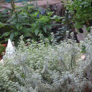 真夏まるっきり放置した庭 やっと秋 初冬の寄せ植え ウエストリンギア スモーキーホワイト(宿根草) なごみももか アルテルナンテラ ポリゲンス アルテルナンテラ コタキナバル
