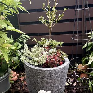 葉牡丹3種とウエストリンギア・スモーキーホワイトを寄せ植えにしてみました。 葉牡丹はサカタの種さんの通販で買った苗、ウエストリンギアは春買った吉本花城園さんからの寄せ植えの生き残りです😊 葉牡丹は種播きもしたのですが、発芽は良いのですが夏の暑さに勝てず残念でした😢 葉牡丹は夏に種播きなので、昨今の猛暑では育苗が難しく、ずぼらなワタシにはもう無理かも💦 苗からが無難かなと思い知りました😅