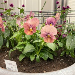 寄せ植え♡ ・パンジー デルタ ・ビオラ ・オレアリア アフィン ・ウエストリンギア スモーキーホワイト ピンク寄りの赤に白い縁のパンジーさんがすごく可愛いです❤️ 6号鉢に4苗はなかなかのきつさだったのでパンビオさんたちの根鉢の土をかなり落としました💦 手前に写っているオレアリアアフィンの苗を三つに分けて後ろの左右にも入れました🌿