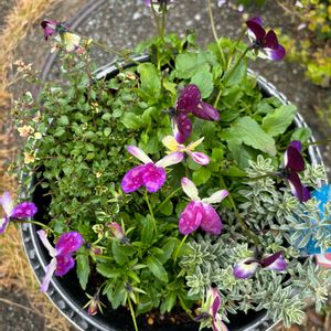 今晩は🐰 寄せ植え作って一週間、まだまだだね😅 ② ビオラ バニーイヤーズ三種類 ③ ウエストリンギア スモーキー ④ タイム フォックスリー こんな感じで〜納得して無い私😆 でもビオラうさぎ🐇可愛いよ😘