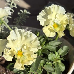 パンビオ寄せ植え ①11/24に投稿した寄せ植え 少しずつですがお花増えてきました💕 ②パンジー ルナ・ドゥーブル お月さま色🌜️🌝🌛 2年目のウエストリンギア 切り戻し過ぎて心配だったけど 新芽出てきました🌱 ③ビオラ バニーイヤーズ🐰 バニーちゃんもう少し頑張って〜🥳 ④プリンセスクローバー ダークデビー♣ いい雰囲気になってきました♪ ⑤全体を撮ると🤳前に置いてる鉢の ネメシアたちが写り込んでしまいます😅 今日は鉢植えのユリを地植えにしました⚜️ 🏷パステル気分♡ 🏷ビオラ・パンジー祭り♪ 🏷金曜キラキラ 🏷金曜日の蕾たち 🏷黄金色の金曜日 🏷煌めきの金曜日 🏷黄色い金曜日 🏷キュートな金曜日 🏷幸せの黄色いお花 🏷秘密の花園♡ 🏷花咲く乙女たち♡ 🏷スライドショー♪ 参加させて下さい💛🩷💟♣🌿( ꈍᴗꈍ)