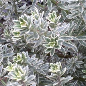 よく似た葉っぱ 第2弾😆 ウエストリンギア🌿 こちらも斑入りの葉っぱ ローズマリーのような… シルバータイムにもよく似ています✨ 紫色の小さなお花が咲くらしいけど まだ咲いたことはありません💦 いつかみれるかな😅