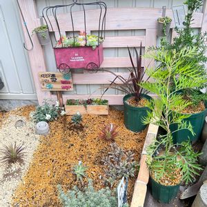 雨上がりの寄せ鉢コーナー お一人様植えを集めて楽しんでいます🥰