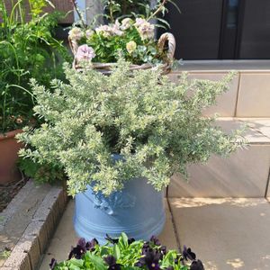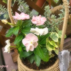 こんばんは(๑•᎑•๑)♬* 先日お迎えしたニチニチソウのメルモさんを使って寄せ植え作りました🌷.* ヘデラの雪ほたるさんとウエストリンギアのスモーキーホワイトさんを合わせたシンプルなかカゴ🧺寄せ植え(*´∀`)♪ 夏のお花、お迎えしたはいいけどなかなか植え替えが進まない💦 梅雨入り☔️🐌する前までに何とか終わらせたいなぁ😅