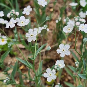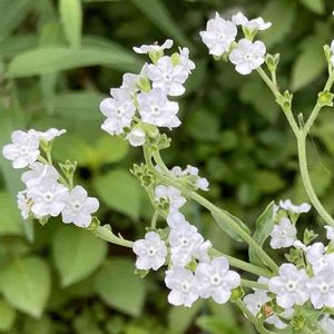 オンファロデス・リニフォリア🤍 GSのフォロワーさんのpic📷で拝見したオンファロデス🤍 売られている苗を見たことなかったので、フリマアプリで種を購入‼️4月に種蒔、ようやくお花が見られました🎵 この花が見たかったんですよねぇ〰️😍🎶 青みがかった葉も👍 たくさん苗ができたので、庭のあちらこちらで楽しんでいます😁⤴️ 🏷白い水曜日♡参加です