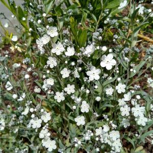 【オンファロデス・リニフォリア】 学名:Omphalodes linifolia おはようございます🌿🌿🌿🪆🌿🌿🌿 どうぞ皆様も良き一日を すらりと伸びた茎に6〜7㍉の白い花が群れに咲き、シルバーリーフの調和が素晴らしい草花。ムラサキ科オンファロデス属の植物で、ミヤマムラサキやワスレナグサによく似た花を咲かせます。別名:「天使のおへそ」🐈🤍🎶