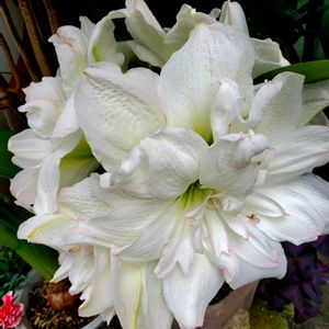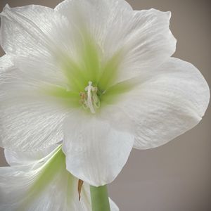 *アマリリス 白(スノーホワイト) (別名 朱頂蘭) 彼岸花科 花友さんから頂いた球根を植えて、ようやく大輪の白色のお花が二輪咲きました~⤴️