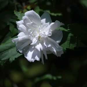 ムクゲ(木槿)白八重 この公園には このシロバナのムクゲばかりが咲く 強い陽射を喜ぶと言うより なにか耐えているように シロバナが咲く