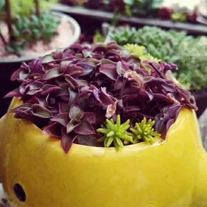 本日②回目です! この鉢は高校からの友だちがプレゼントしてくれたの😁🎵 多肉ちゃんに興味があるみたいだけど枯らしてしまうと勇気が無かったみたいなので1月の誕生日に、桃太郎、静夜、セダムの寄せ植えをプレゼントしたの😚💕そしたらすっかりトリコになったみたいでありがとうってこの鉢を~♪♪ 少し小さめなので小さいのセダムで寄せてみた😋🎵 グフフ♡ ありがとう😆💖