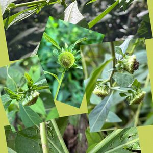 全体に黄色くなってるけど「ヤブタバコ」ですね。今にも枯れそうだけどちゃんと果実は乾燥するのかな❓ 乾燥した果実は小さな蜂の巣みたいな感じです。傘状に小さな臭腺がたくさんかたまっていて夫々からかなり臭い粘液を出して、それで引っ付き虫になります😅