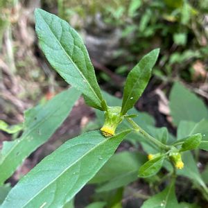 ヤブタバコ 山道で見つけた😁 コヤブタバコかも? とっても小さな花🌼黄色がチラッと見える 2021.10.15