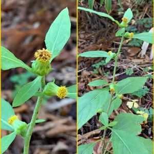 💛🌿よく似たお花 ⬆️🌿ガンクビソウ キク科の多年草 枝先に花をひとつづつつける ⬇️🌿ヤブタバコ キク科の一年草 上部の葉腋にひとつづつ花をつける