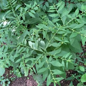 ヤブタバコ (藪煙草) 🌿キク科 *主茎は真っ直ぐに立って高さ30~90㎝ *茎頂から放射状に数本の枝を出し、それらの枝は水平に近い斜め上に長く伸びる *頭花は枝の葉腋に下向きにつける 長く整列しています☘️☘️☘️