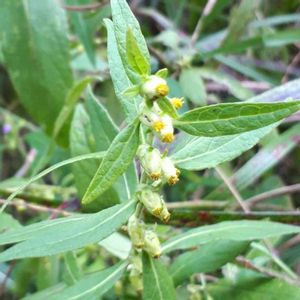 横並びに咲く写真を間違えて削除してしまったらそれが一番ヤブタバコとわかりやすいものでした ※キク科ヤブタバコ属 花期9〜11月 下向きにつく花は雌性花と両性花からなり両性花の方が結実するそうです 果実には臭気もあり粘液を出すそうでいわゆるひっつき虫になるそうです 私はいつもこの花が咲いている場所を通って観察に行くのですがたくさん咲いていたので少し脇にそれた道を辿るようですね