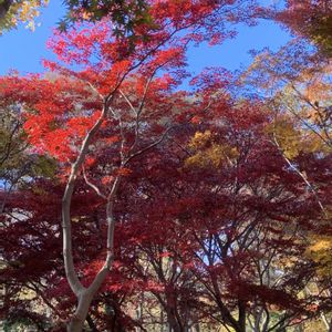 神代植物公園でもみじ狩り 空が青く抜けて、最高のお天気です 木漏れ日がキラキラしてキレイ