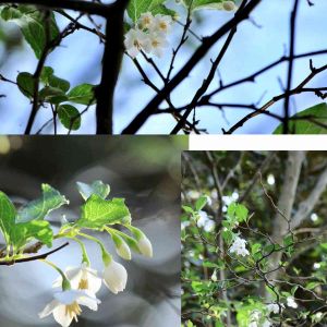 冬桜かと思ったけど、なんか違う。 季節外れだけどエゴノキかな?? 調べてみると、本来、春に咲くが、たまに秋に咲く年もある、とのこと。 その原因は、 『地球温暖化ではなく葉が台風によるか、虫に食われてなくなってしまったせいだそうです。 春に咲く木の花は前年の夏に花芽を作ります。しかし、その後すぐに花芽が成長し秋に花が咲いたのでは種子を実らせるのが寒い冬になり種子はできません。そこで、秋に花芽の成長を止めて来年の春まで休眠させ春に花を咲かせ種子の実りを夏にします。 その花芽の休眠を促すホルモン(アブシシン酸)を作るのが葉だといわれています。ところが、花芽を作ったあと葉がなくなってしまうと、そのホルモンができないので花芽を休眠させることができず花芽が成長して秋に咲いてしまいます。 ソメイヨシノも台風などで夏に葉がなくなると秋に花が咲くことがあります。』 (サイト「みちくさ図鑑」より引用) だそうです。なるほど💡
