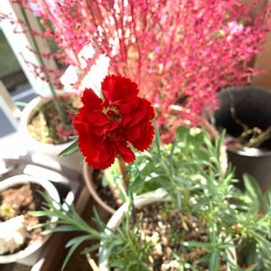 ヒョロ〜と首をのばして今咲いてます😆 支柱で支えないと腰が曲がってしまいます😰 何年物だろ? 送ってくれた子はとうに忘れてるみたいです💦 今日のお花カーネーション