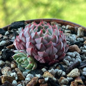 春萌さんの鉢に落ちた子持ち蓮華さん🪷 可愛いコラボ😍❤️ ただ日照不足で春萌さんは徒長💦 春萌を綺麗に育てられない😢