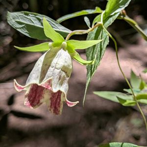 フウリンウメモドキ 風鈴梅擬…モチノキ科 高さ…2~3m 分布…本州,四国,九州 実の大きさ5.6㍉程 名前の由来は、 長く伸びた柄の先に ぶら下がる姿が 風鈴のように見える事から🎐 さくらんぼ🍒みたいな 赤い実がユラユラ~ 写真は撮りずらかったけど💦 可愛い実に💓 10月9日. 英彦山🌲ブナの木の側で🤳