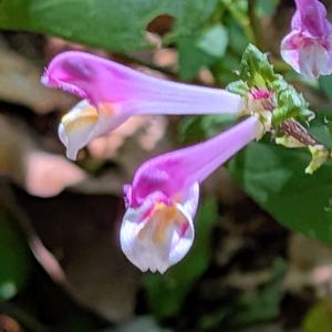 シコクママコナ 四国飯子菜 ハマウツボ科.半寄生植物 花期8~9月 高さ 20~50㌢ お花の大きさ…1.5㌢程 分布…東海地方以西 四国.九州 花冠の内部に 黄色の斑点があり 苞のふちに刺毛状の歯牙が あります。 夏から咲いてたお花💗 もう終わってると 思っていました。 大文字草が咲いてる崖の上を 見上げたら 赤いのが見えた👀 脇から回ってなんとか🤳 残り花に😍 10月9日.英彦山で