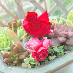 今日のお花⋆*❁* インパチェンスの切り花を 多肉寄せに載っけてます😁 ✿ダブルインパチェンス 『ムジカ』エレガントレッド✿ お気に入りの 八重咲きインパチェンス でしたが… …過去picです😢 (Myアイコン♪)