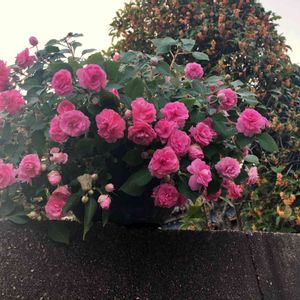 八重咲きインパチェンス 今年の夏は暑すぎて、水や肥料をあげても花があまり咲かなくて、ハズレの苗だったのかなぁと思っていたら、秋になって沢山咲いてくれました。🌸🌸🌸 花が咲いても、下を向いてしまうので、塀の上に乗せ、下から覗いてパシャ。 隣のお宅のキンモクセイが満開で、いい香りです。💛