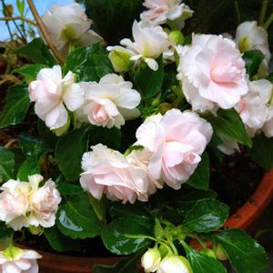 こちらも一雨後の2年目八重咲きインパチェンス。インパチェンスは枝の先から花が咲き出し徐々に株の上に向かって咲くので一面に咲くのはもう少し時間がかかるかな。昨年のupを見たら12月頭に一回り小さな株に花が🌸今年の6月から7月にも良く咲いてくれました🥰ピンクの発色も良くて玄関で一際目立ってます💕挿し芽にした2株はそれぞれお嫁にいきました〜
