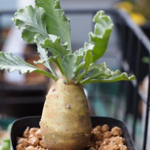 塊根に綺麗な葉っぱ 大好物なとりあわせ