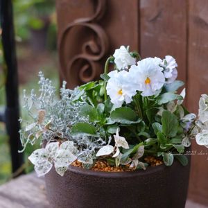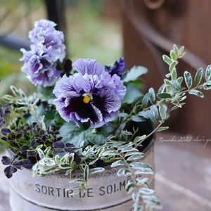 先週作った寄せ植え 何か物足りなくてそのままキープ 今日 葉牡丹の後ろに グリーン足しました(*´ω`*) うん 落ち着いたかも♫ 小輪パンジー わらく プチグレース スプレー葉牡丹 デュエット アリッサム レモン&ピーチ コプロスマ キルキー