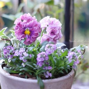 週末からの植えられ待ち その2️⃣ ローブドゥアントワネット 去年はソワレにしたんだったかな? 今年は好きな色があったのでこの子に💓 やっぱりピンク系が好きすぎる(๑´ლ`๑) パープル系のアリッサム(後方)もお迎えしているので 一緒にする予定〜〜✨