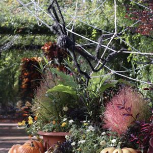 🎃Happy Halloween👻 今回は おひとりさまじゃないの😆 花友さんに誘われてYEG 入園したらすぐハロウィン装飾〜 おっきな蜘蛛🕷️もカボチャも ここではオサレ〜〜🖤🧡♥️ バラ観る前から 足が止まりました〜(๑´ლ`๑) 〜10/28 横浜イングリッシュガーデン〜