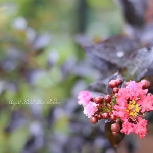 小さかったブラックパールも おチビな私の背を超えてきました💨 白く見えますが淡ピンクです💓 今年は 花穂(表現合ってる?)7.8つけて ちょっと賑やかです(o´艸`)ウレシイナ♡ ④先日のサンセットマジックは ほぼ満開に♥️ サルスベリの花びらヒラヒラで 散っても可愛い💕