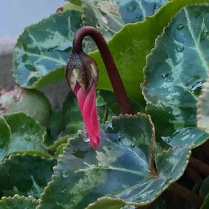 おはようございます😃 強風🌀 【ガーデンシクラメン】さん咲きました❤️ いくつか花芽もあります🎶