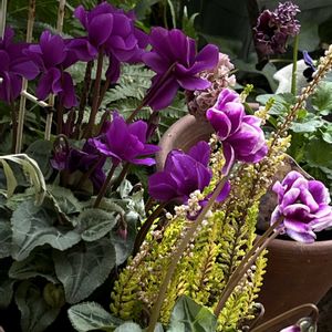 ❶シクラメン フェアリーピコ&カルーナ ノーザンライト✨✨ガーデンシクラメンではないのかな?今のところ暖かいのでずっと屋外🫢❷❸パンジーたち✨✨良き良き😆❹❺ダリア 艶舞✨✨昨日気付いたら、花首がガックリ垂れていたの慌ててコップに差しました💦💦