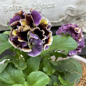 パンジー ローブ ドゥ アントワネット2株と パンジー ドラキュラ3株 ベランダで揃った 毎朝早起きして眺めるのが楽しみになりました