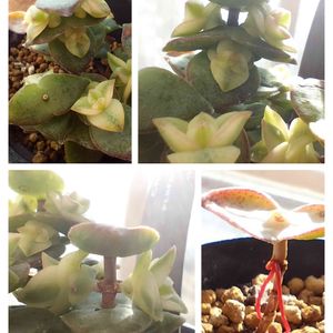 クラッスラパーフォレータバァリエガータ(別名:南十字星) 地味に伸びてます 斑入りっぽくなってます 上:1月26日 下:6月19日