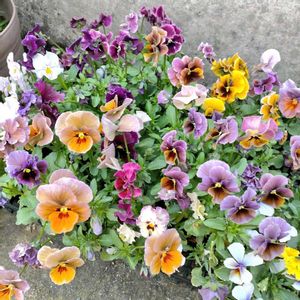 玄関前のビオパンもさもさ花壇🌸 カラフルです(*^^*)