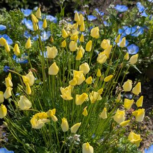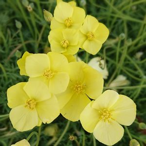 《フローラルガーデンよさみで見つけたこの花🌼》 黄色の花ってビタミンカラー🌼なんだか元気が出るよね🤗 ヒメハナビシソウは、カリフォルニア州原産のケシ科の秋播き一年草です。ハナビシソウと比較すると草丈が低く、花も小さいですが、まとまって賑やかに咲きます。🤗🌼